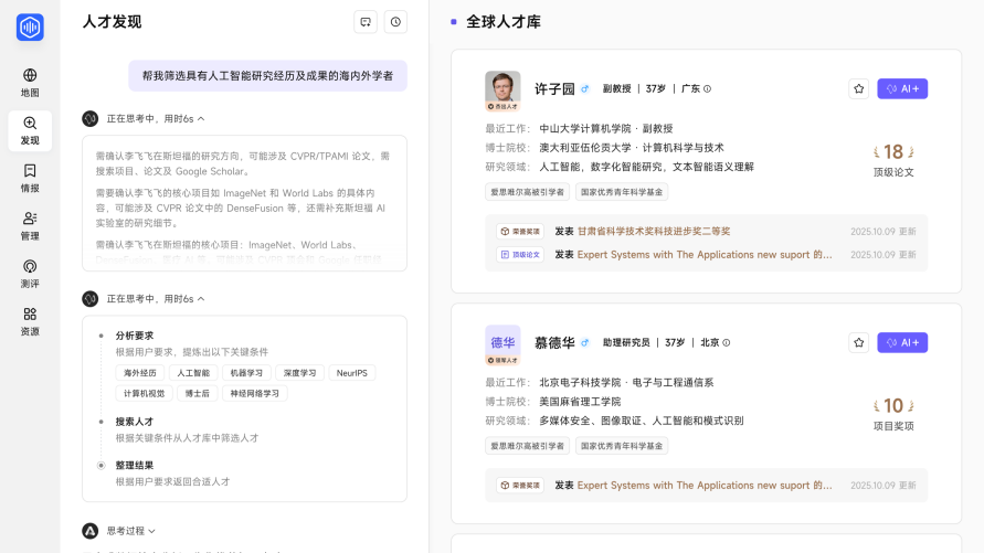 智强人才地图以 AI Agent实现能力鸿沟冲破,旨正在为高校、科研院所建立起“定位-吸引-聘请”完整引才链。同时操纵多个消息源进行交叉验证,进行联系关系推理取智能排序,近日,系统搭载天然言语处置取深度推理手艺,它取聚焦硕博的智能聘请平台理聘、雇从品牌宣传形成了“1+2”的引才办事,为引才供给了科学的决策支持,