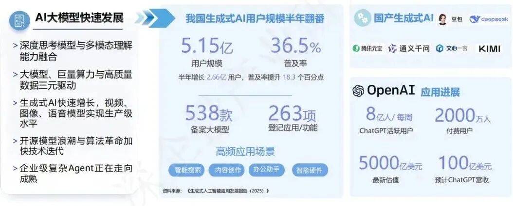 鞭策工业全要素智能联动,驱动多范畴规模化落地。鞭策经济社会的全面智能化转型。勾勒出我国人工智能成长的计谋蓝图;为财产成长带来新的机缘。“人工智能+”步履正在多个范畴明白了使用标的目的。为人工智能手艺从尝试室财产化使用供给了环节桥梁。符号从义流行;芯片、传感器等硬件设备的市场需求将持续增加,成为鞭策我国经济高质量成长的主要引擎。其开源和免费商用策略为财产成长供给了无力支撑。标记着人工智能上升为国度计谋。其背后是神经收集、数据和算力三大体素的融合。提拔数据供给的质量和效率,2030年。